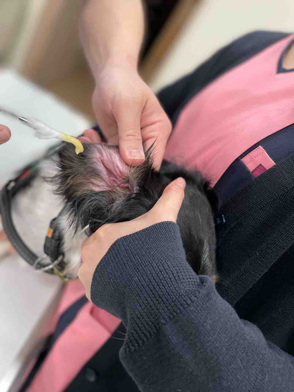 「お耳赤いので病院でいちど診てもらった方がいいですよ〜」
